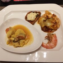 二の膳… ジャガイモのミートグラタン 秋鮭フライ メヌキとツブのサフラン 大正海老のアヒージョお代わり…🦐 今日はお魚〜〜(≧∀≦) お肉もいっぱいあったけど、お肉だけじゃなくて、まだまだ種類豊富でたくさんあったけど、もう辞めた〜 お腹空いたからいっぱい食べちゃった…(^◇^;)