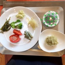 本日の晩御飯ブュッフェ 津別産野菜のピクルス ミニトマト、カリフラワー、胡瓜、紫大根、パプリカ3色、人参 ボイル赤海老🦐🦐 チーズ盛り合わせ🧀 一口ピザ🍕 スモークチキン 野菜添え 一切れだけ鮭の包み焼き チーズいっぱい😻❤️テンション上がる⤴️ ヽ(´▽`)ノ 今日も控え目にバイキングでした。 デザートはソフトクリーム🍦