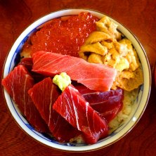 大間に来ました!マグロ、ウニ、イクラどーん!
