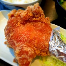 3連休最終日 南島原市まで来ております。 本当のお目当ては「実吉(みよし)」さんでデカ盛りだったのだけど…。 定休日でした😭 なので、南島原で有名な唐揚げのお店に🚗 ³₃ 鶏モモ唐揚げ定食 アオサと豆腐の味噌汁付きで満足~