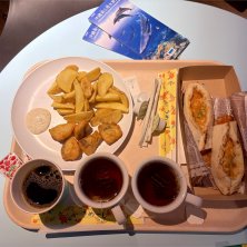 美ら海水族館 黒潮の海の大水槽の脇のカフェ。 がんばって水槽のすぐ脇の席を確保! ソーダフロートを飲みながら、ゆったりジンベイザメを楽しむことができました。 ここもスケールがすごくて綺麗でした。何時間でもいられそう。