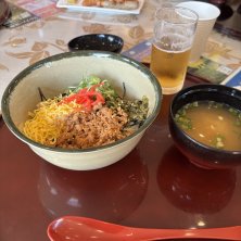 ゴルフ場の朝ごはん。ここでは定番の玉子かけごはん。毎年夏は提供休止になるんだけど、今年はこの時期になっても注文可能。