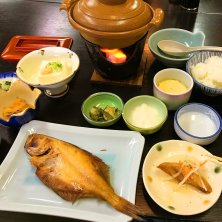 旅館での朝食 小鍋は蟹🦀の味噌汁でした(o^^o) 美味しかった〜〜 ご馳走様(o^^o)