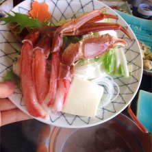 今日のお昼は、黄色のタグ付きのおっきいカニさーん♡ 茹でた越前蟹と、 カニしゃぶ〜♡ 美味しかった!(*^o^*)