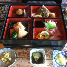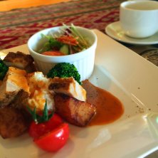 ばしゃ山のレストランでランチ! 今日は豚肉の低温ロースト☆ 柔らかい豚肉〜(*^^*) 他は スープ サラダ お漬物 ごはん コーヒー 海を見ながらリゾートホテルでランチできる環境、幸せ♡