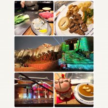 ステーキ&ガーリックシュリンプ 今夜はサムズの鉄板で焼いてくれるレストランで夕ご飯😋食後に首里城のプロジェクションマッピングのライトアップを見てきました〜💕工事は来年で終わるらしい。