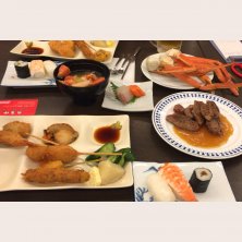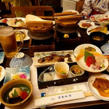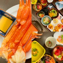 ホテル紅葉館のディナーバイキング! めっちゃ広い食堂でとにかくメニューが多い! カニはイマイチ( ; ; ) 種類が多すぎて全種類トライすることはまず無理、おそらくこれでも半分くらい、チキンやステーキもあったけれど到底食べ切れない( ; ; ) ビールの一杯くらいはいいかもしれないが種類を食べたければお酒はやめたほうがいいかも知れない!