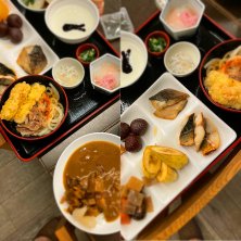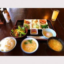 ホテル紅葉館の朝食バイキング! まぁ夕食もそうだが全種類食べるのはムリ( ; ; ) カレーが食べたかったから他のアイテムは抑え気味に、でも毎日こんな食事していれば絶対身体には良くないと思う⁇