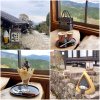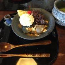 馬籠の古民家カフェでクリームあんみつ❤︎ 小豆は甘さ控えめ〜寒天だけじゃなくてわらび餅も乗ってた♪