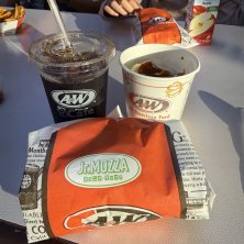 沖縄何度も何度も来ててずっと見知ってたけど食べたことなかった‼️A&W🍔 美味しかった😋✨ 夜ご飯の時間微妙〜になかったのでテイクアウトして車内で食べて空港へ✈️ 19:00の飛行機で帰ります〜‼️