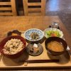 昨日の昼の続き。ハンバーグ。スパイシーな味付けでおいしいかった。地野菜たっぷり。 4人で昨日のチキンとハンバーグのランチセットで十分な量でした。