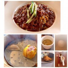 本日のランチ୧(๑❛ั︎⌔︎❛ั︎๑)୨ ॢ やっぱりココガーデン良いわ〜♡ 美味しい♪✧✨ ランチ 蓮花 Lotus flower チャーシューと白葱のピリ辛ソース掛け ジャージャー麺 本日の点心2種 ザーサイと鶏肉の塩玉子スープ ココナッツ団子