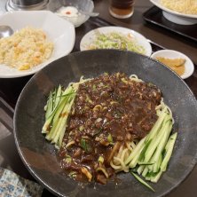 炸醤麺。半炒飯は「半」じゃなくてひとくちだった。