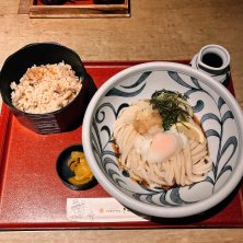 本日の麺ランチ✨ おろしぶっかけうどん(冷)定食❗️かやくご飯付❣️ コシが抜群❗️のうどんに、おろしでさっぱりと 出汁は甘目で、コクもしっかり👌 かやくご飯との相性もいいね👍😊