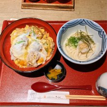 本日の麺ランチ✨ かしわ天玉丼定食❣️ 大きい鶏天×4個のど真ん中に、玉子❗️ ボリューミー👌 冷たいぶっかけうどんも、弾力が👌 満腹感溢れる定食です😋 うどんは、勿論❗️無料増量👍