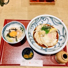 本日の麺ランチ✨ 親子丼セット❗️ぶっかけ(冷)無料増量❣️ 暖か〜い、とろとろ卵に 歯応え抜群❗️のぶっかけ❗️NICEbalance👍😋