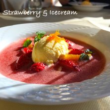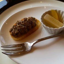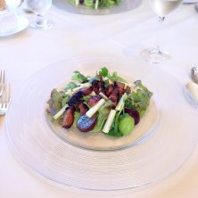 山梨桃とスモモのサラダ(*´꒳`*) この自家製ドレッシング(多分、蜂蜜&オリーブ油&黒胡椒)が絶妙で「残りをパンに付けて食べてくださいって」(๑˃̵ᴗ˂̵)最高に美味しい♫