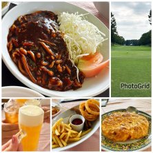 ゴルフの日のランチ 豚肉と筍の甘味噌炒め 豚とキムチの卵炒め 牛蒡揚げ、オニオンフライ、フレンチフライ 生ビール 秋晴れのゴルフ日和 暑くもなく寒くもなく爽やか〜 おつまみで頼んだ、豚とキムチが卵焼きになってるやつや、美味しかったー! 豚キムチを卵炒めにするなんて! これは作ろう!