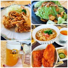 ゴルフの日のランチ 卵のあんかけうどんとミニソースカツ丼のセット 生ビール キャベツの鉄板焼き ザンギ 日中暖かくなって春みたいなポカポカ陽気に。 少し風はあったけどとても気持ちの良く回れました。 おつまみで頼んだキャベツの鉄板焼きがとてもおいしかった。蒸したキャベツにフライドオニオン乗せて、ソースをかけて食べます。 これは家でもやりたいなぁ😍