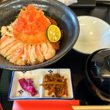こんにちは♪ 昨日は福井県の蒲生町でセイコガニを 食べてきました。 セイコガニは香箱蟹、セコガニなど と呼ばれている越前蟹の雌です。 資源保護の為1年で2ヶ月しか出会えないそうで、 期間限定の蟹チャンなので予約して行きました。 店名がまつ田なのでまつ田せいこ丼なんだそう☺ 蟹の出汁で炊いたご飯の上に蟹身、外子、内子、がたっぷり2杯分🦀 甲羅に残ったミソと 蟹酢を混ぜて丼へ投入したら、お口の中へ かきこみます♡ 無言で完食、なんも言えねぇ〜😆 至福でした。