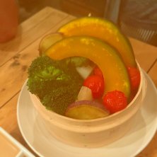 春キャベツの白身魚の蒸し物。 わさび風味のアンがかかってて混ぜ混ぜしていただく! 蒸し物って美味しい!!