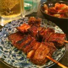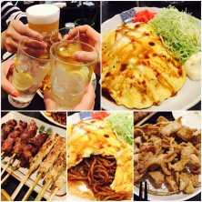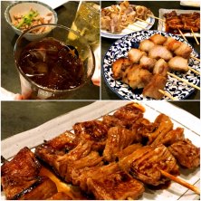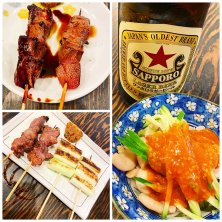 ほどなくしてリュウちゃん合流〜 オム焼きそば 鶏皮揚げ 焼き鳥 生ホッピー リュウちゃんオーダーでここの看板商品らしきもの たまにはいいね(#^.^#)こういうの 毎回は無理だけどw