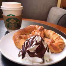 【デニッシュプレッツェル メイプル】 *ヒーティング *addホイップ *exホイップ *addチョコレートソース 【スターバックス ラテ・ショート】 *ノンファットミルク *addショット 今日のホイップは、こんもりとしたひょっこりひょうたん島タイプやねぇ〜♪ (*≧艸≦) ( 」゚Д゚)」 メイプル〜!