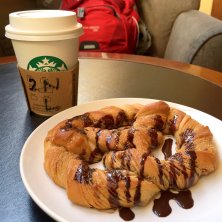 【デニッシュプレッツェル メイプル】 *ヒーティング *addチョコレートソース 【スターバックス ラテ・ショート】 *ノンファットミルク *addショット ホイップなしの ( 」゚Д゚)」 メイプル〜♪!