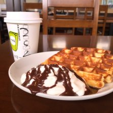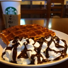 【アメリカンワッフル】 *ヒーティング *addホイップ *exホイップ *チョコレートソース 【スターバックスラテ】 *ノンファットミルク *addショット *exホット 今日の朝スイーツ〜♪ (๑◕ˇڡˇ◕๑)
