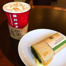 【ジンジャーブレッド ラテ・トール】 *adショット *Ltシロップ *exトッピング *exホット 【ホットサラダラップ スピナッチ&チーズ】 Share 実は…サラダラップを食べんの初めてやねんけど、うまいね〜!(*´σー`)エヘヘ
