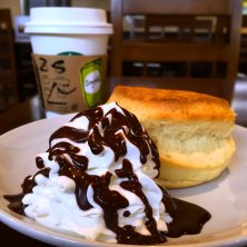 今日だけは 特別なのと 言い聞かせ (〃⌒▽⌒)ゞ 【バターミルクビスケット】 *ヒーティング *addホイップ *exホイップ *addチョコレートソース 【ソイラテ・ショート】 *addショット