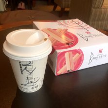 【スターバックスラテ・ショート】 *ノンファットミルク *addショット *ラテスマイル ( ❛ᴗ❛ ) 会社用のおみや〜♪は、博多バームスティックのプレーンとあまおう苺のセット!( •̀ .̫ •́ )✧