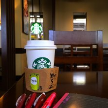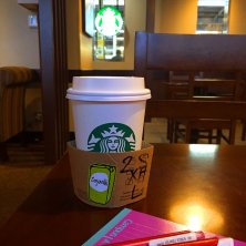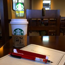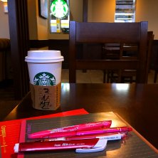 【スターバックスラテ・トール】 *ノンファットミルク *addショット *exホット 朝活〜♪(๑◕ˇڡˇ◕๑) なんか赤系の色した軸が多いねんけど…(*´σー`)エヘヘ