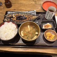 特選サバ開き定食^_^ 本日のタンパク質補給🐟 朝食抜きの腹に野菜プレートのみでは、 腹4分というところでした。 ちょうど前から気になっていた お店が近くにありましたので、 今日はコンボで参ります🔥🔥😃 アジや、ホッケの開きは よくありますが、サバの開きって 珍しいのでは? 炉ばた焼きの、この焦げ🔥具合が最高ですね。 念願通り、頭から丸ごといきました。🐟😁 頭はサラダ煎餅のようにサクサク。 身は分厚く、食べ応え十分。 期待を上回りました⤴️ ご馳走様でした🙏😃