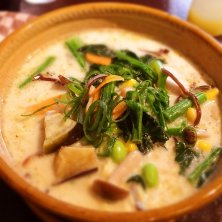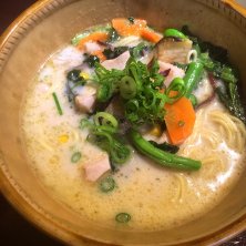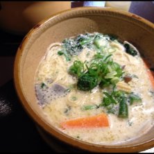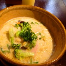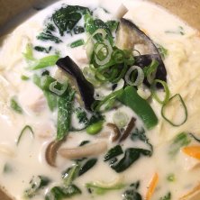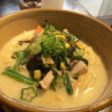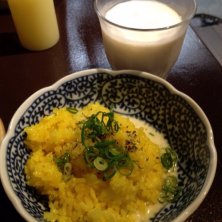 グリーンカレーラーメン! ゆず効かせても旨いーーー! 替えメシは定番の! そう、黄色い米!←名前出て来ない