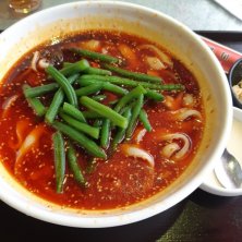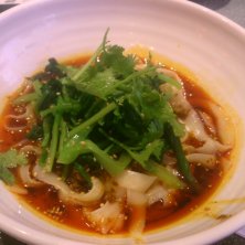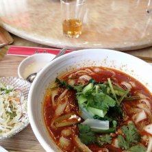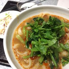 今日もマーラー刀削麺。今日は麺少なめとパクチーなし。