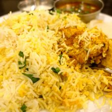 『アーンドラ・ダイニング 銀座本店』(@銀座一丁目) 「(チキン)」(1690円) 付属:ライタ、カレー 「グラス赤ワイン(インド)」(750円) 2016年ビリ活第11弾 土曜日夜限定ビリヤニ。17時45分の入店で、全席予約済み。ビリヤニ食べて30分で出ると言うとOKに。人気ですね。 ふわふわパラパラ系で最も美味いこちらのビリヤニは、薄味、スパイス感十分でサクサク入ります。この日のチキンはガーリック風味しっかりでパンチあり。付属のカレーとライタでも味を変えつつ、大満足完食です(*^o^*)