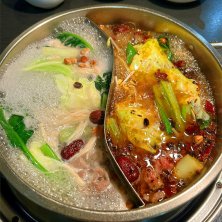 先日久し振りに火鍋を食べに行ってきました🥘 薬膳たっぷりで身体にいいはず✨ 赤い方のお鍋は最初むせるぐらい辛かったですが、出汁を足していくとまろやかになって美味しい😊 お肉が多過ぎて、お肉食べ放題の方にしなくて良かった😅