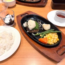 海あがりランチ。 ハンバーグ&ステーキのセット。 お肉硬いかも、って覚悟してたけど無事柔らかくて美味しく頂きました(о´∀`о)