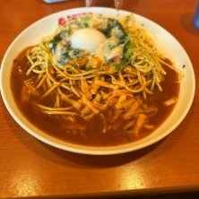 野菜 あのココイチ系列のあんスパ屋。 ちょっと身体に気を使い、野菜というメニューを選択。 でもほぼ玉ねぎのみ。 こんな場所でもあんスパが食べられる愛知県はステキ。