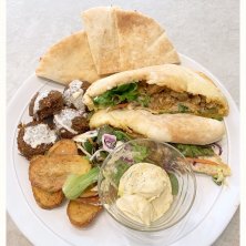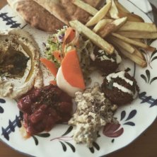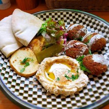 先日の夜ごはん^_^ イスラエル料理を食べに行きました❣️ 3人でこれでおなかいっぱいになるので 次は4人くらいで行こうかな。 美味しかったからもっと他にも食べたくて☺️💕 ✳︎モリラム ✳︎ファラフェル(ひよこ豆のコロッケ) ✳︎フムス(ハーフサイズ、ピタパン付き) トマトと卵とチーズのやつは 名前忘れてしまった😵