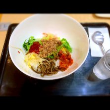 今更ながら紙粘土とかを買いに(察して下さい…w)イオンに行ったので、もうフードコートで食べて帰ろうということになり。 韓国料理のハンチェでフレッシュピビンバを♪ 器が大きいので少ないように見えるけど、普通にボリュームあります☆ 野菜も摂れるしご飯もしっかり食べられるし、コレ大好きです♪