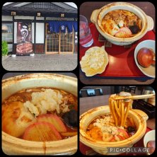 10/27日🈷 娘の所に行く前に 遅いお昼をランチ😋🍽 もう何年もご無沙汰のサガミ 懐かしい四川味噌煮込みうどん ただね! 煮込みうどんだから、もっちり柔らかいうどん期待してたのね。 そしたら、芯のある硬めのうどんだった😞⤵️ 煮込みが足りんのかと思って 店員呼んで聞いたら ここのうどんは、わざにそうしてあるんだって💦 注文の際に、うどんの硬さは選べたらしい。 そんなの気が付かんわ! 教えてよぉって思ちゃった😅