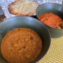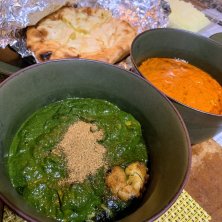 はい(^ ^) 今日も一日お疲れ様でした〜 ということで… 今夜はアダルサさんのインドカレーを ギリギリでテイクアウト🎵 ・アダルサバターパニール ・ビーンズカレー 久々だったけど、チーズナンのサービスを 頂いてしまいました😊