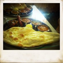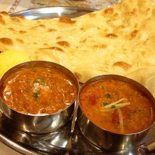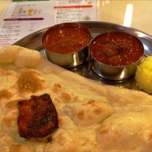 チキンカレーとシーフードカレー(*´ω`*) ナンちょーおっきい!!!