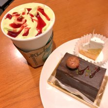 0時までやっているから このスタバに来ました。 二階は、ほぼ満席なのに、 誰も喋ってなくて、 みんな、スマホか本かパソコンと 向き合ってます。 30人くらいいるのに、静か〜😰 だから、主人と小声でしゃべってます。 25日まで限定の ピスタチオクリスマスツリー &ブッシュドノエルケーキ
