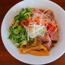 らーめん香澄の特製煮干しまぜそば。 寒いから汁ありにしようと、一瞬心が揺らぎましたが、ようやく来れた香澄の最初の注文だったんで、前から狙ってた煮干しまぜそばにしました♪
