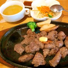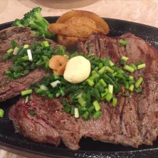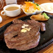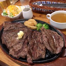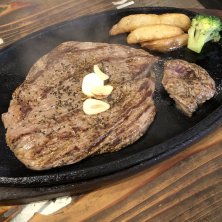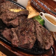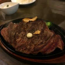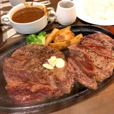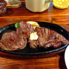 ワンパウンドステーキ このモコモコした立体感を写せないのが悲しい。 すでに1/4食ってますけど。。 ジューシーな肉汁、塩の旨味、にんにくの豊かな風味にもマッチ、このワイルド感。うまかった〜(≧∀≦)