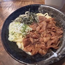 ここのうどんはオススメである。 栖鳥かまたまうどん。 鳥皮を一度ボイルして、醤油とお酢で煮込んだものに釜玉である。うどん版親子丼。 麺は平めんでモチシコなしっかりした麺。 揚げいなりも食べたいお店。