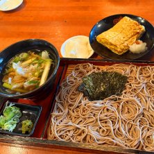 おむすび卵焼き付き 960円 そば自体の美味しさはよく分からなかったけど、甘いつゆ美味しい 卵焼きが人気らしいけど、まぁ普通かな…これも甘辛め。 黒豚しゃぶも気になった